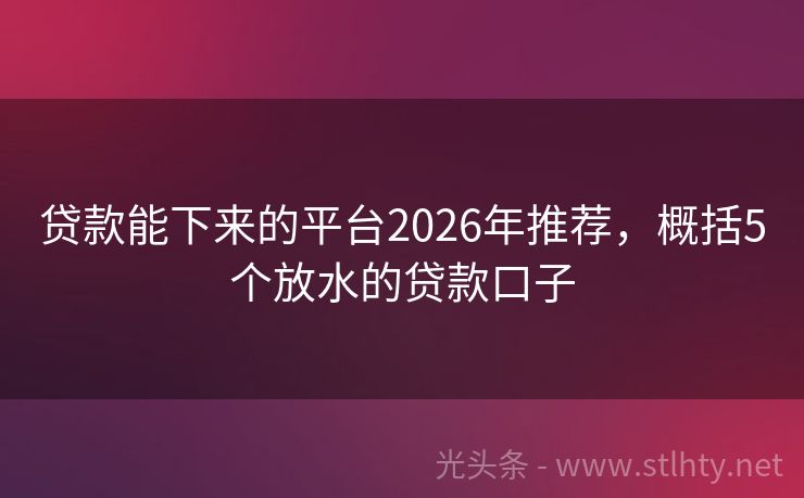 贷款能下来的平台2026年推荐,概括5个放水的贷款口子 近年来,随着金融科技的快速发展,各类网贷平台如雨后春笋般涌现,在众多平台中,如何选择一个既能满足资金需求,又能确保资金安全的平台,成为了许多借款者关注的焦点,尤其是在当前逾期严重的背景下,选择一个靠谱的借款平台显得尤为重要,下面,我将为大家推荐几个在2026年逾期情况下依然能下款的贷款能下来的平台,...