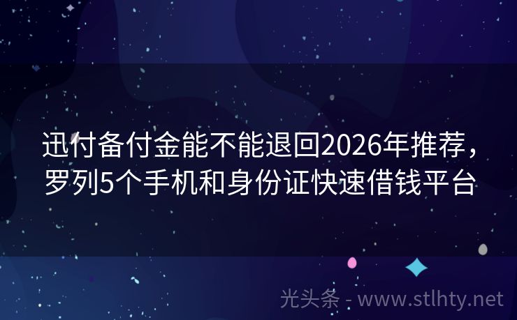 迅付备付金能不能退回2026年推荐,罗列5个手机和身份证快速借钱平台 随着互联网的普及,越来越多的人选择通过网络平台来满足自己的信贷需求,在众多网贷app中,如何挑选出正规、安全、可靠的平台成为大家关注的焦点,我就来为大家盘点一下“迅付备付金能不能退回排名”,让大家在申请贷款时更加心中有数。 2026年的迅付备付金能不能退回有:微粒快贷、省薪贷、微粒宝盒、小麦粒钱包、...