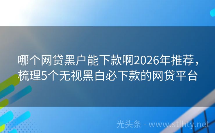 哪个网贷黑户能下款啊2026年推荐,梳理5个无视黑白必下款的网贷平台 “征信黑了,急用钱”这是很多人面临过的棘手问题,在这个关键时刻,选择一个靠谱的哪个网贷黑户能下款啊至关重要,就让我来为大家推荐几个信誉良好、服务优质的哪个网贷黑户能下款啊,助您解决燃眉之急。 2026年的哪个网贷黑户能下款啊有:闪电侠钱包、民生易贷、福瑞钱包宝、借款宝贷、现金易融通宝等。 一、闪电侠...
