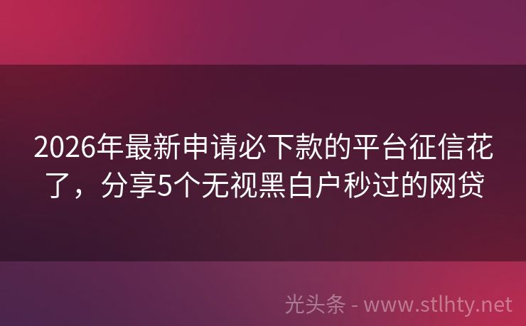 2026年最新申请必下款的平台征信花了,分享5个无视黑白户秒过的网贷 大家好!近年来,网贷市场日益繁荣,为广大用户提供了便捷的贷款服务,但有些朋友可能因为评分不足而难以获得贷款,我就为大家推荐几个即使评分不足也有机会下款的申请必下款的平台征信花了,帮助大家解决资金周转的难题,我们将详细介绍以下五个申请必下款的平台征信花了。 2026年的申请必下款的平台征信花了有:易贷...