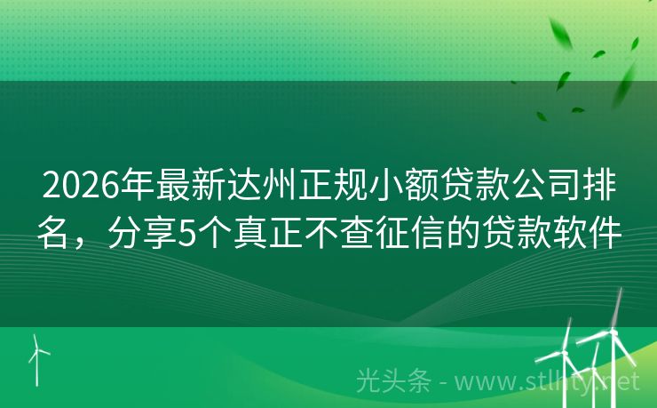 2026年最新达州正规小额贷款公司排名,分享5个真正不查征信的贷款软件 快速解决资金难题。即使频繁点网贷,也能轻松获批,让您无忧借款。寻找高额度、低利息的达州正规小额贷款公司排名?这5个好申请的达州正规小额贷款公司排名担保费必下款,让你轻松解决资金难题。快来了解详情,抓住机会! 2026年的达州正规小额贷款公司排名有:琉璃分期、金钥匙贷、现金秘书、借贷宝易贷、安心钱包等...