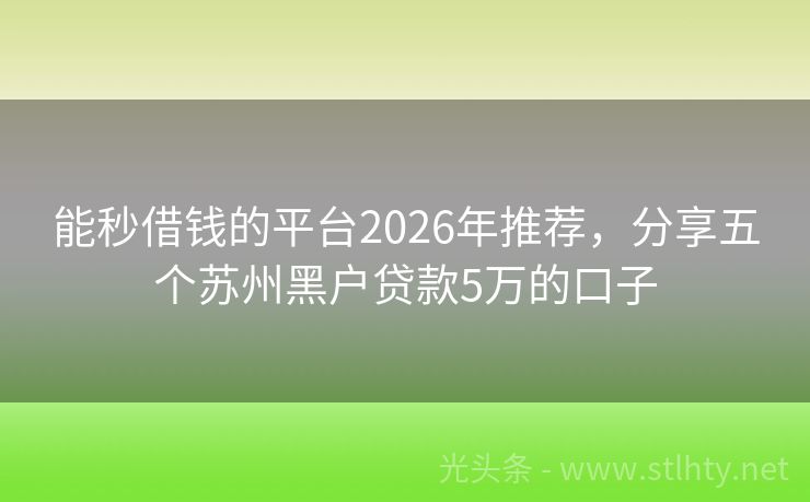 能秒借钱的平台2026年推荐,分享五个苏州黑户贷款5万的口子 能秒借钱的平台多,选择需谨慎。我们整理了5个能秒借钱的平台,即使有严重逾期、负债高也能放款!无需繁琐流程,快速解决资金难题。诚信借贷,轻松还款,让生活更从容。 2026年的能秒借钱的平台有:借钱快易借、投友圈、融资易、用钱宝、日日贷通等。 一、借钱快易借 借钱快易借也是不查征信1000好下款的借款平...