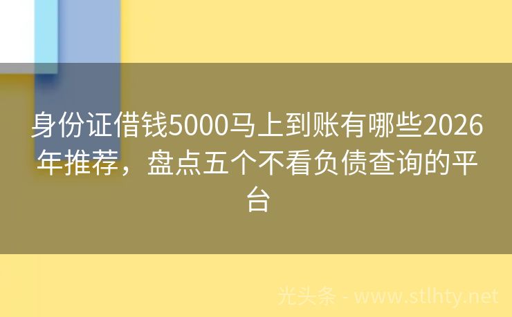 身份证借钱5000马上到账有哪些2026年推荐,盘点五个不看负债查询的平台 近年来,网贷市场发展迅速,为广大用户提供了便捷的金融服务,很多人在申请贷款时,都担心征信和负债问题会影响审批结果,我就为大家推荐几个“2026不看征信不看负债的网贷”身份证借钱5000马上到账有哪些,让您在资金周转上更加轻松自如。 2026年的身份证借钱5000马上到账有哪些有:现金秒贷、瞬借宝贷、...