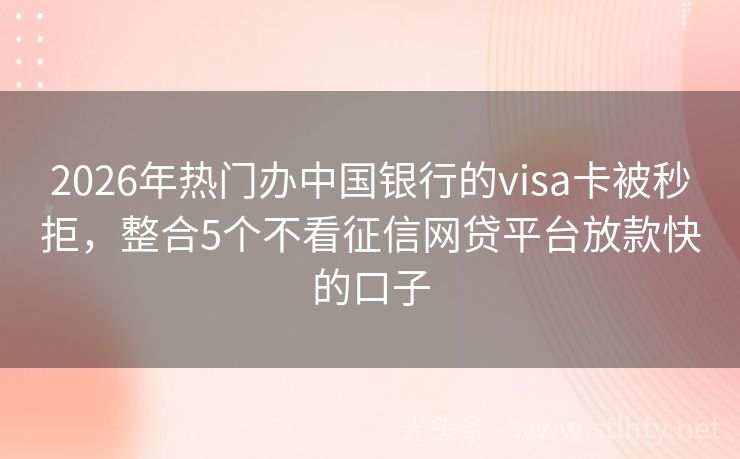 2026年热门办中国银行的visa卡被秒拒,整合5个不看征信网贷平台放款快的口子