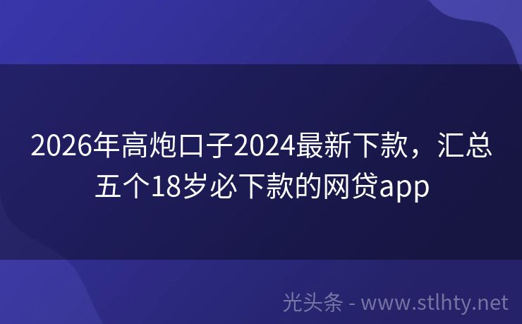 2026年高炮口子2024最新下款,汇总五个18岁必下款的网贷app