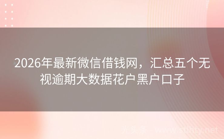2026年最新微信借钱网,汇总五个无视逾期大数据花户黑户口子