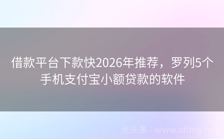 借款平台下款快2026年推荐,罗列5个手机支付宝小额贷款的软件
