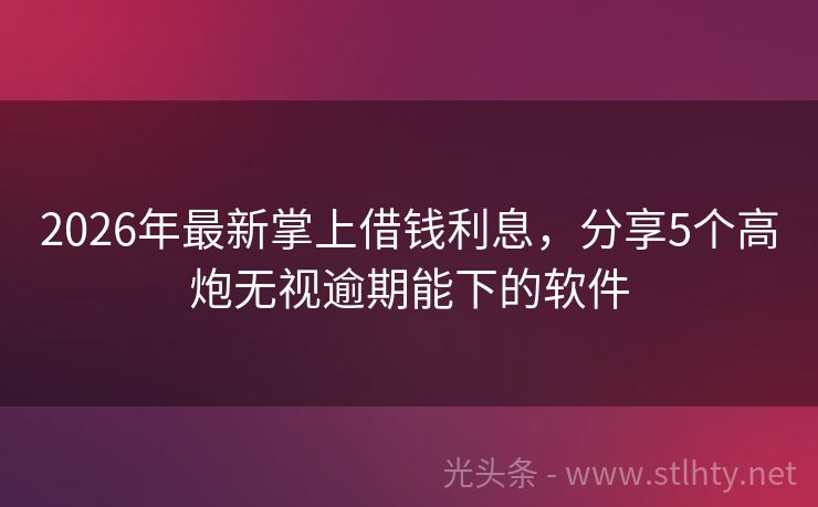 2026年最新掌上借钱利息,分享5个高炮无视逾期能下的软件