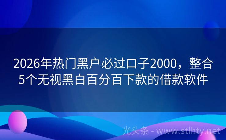 2026年热门黑户必过口子2000,整合5个无视黑白百分百下款的借款软件