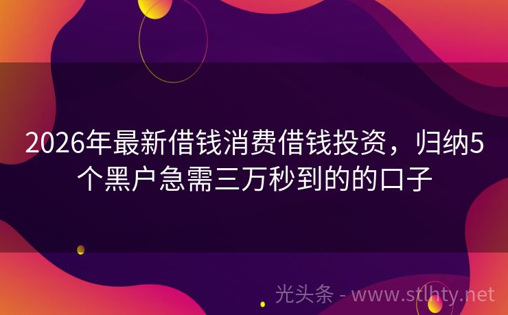 2026年最新借钱消费借钱投资,归纳5个黑户急需三万秒到的的口子