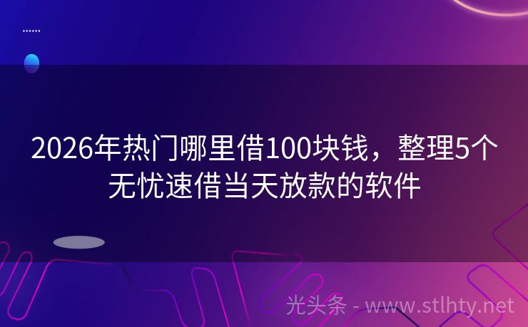 2026年热门哪里借100块钱,整理5个无忧速借当天放款的软件