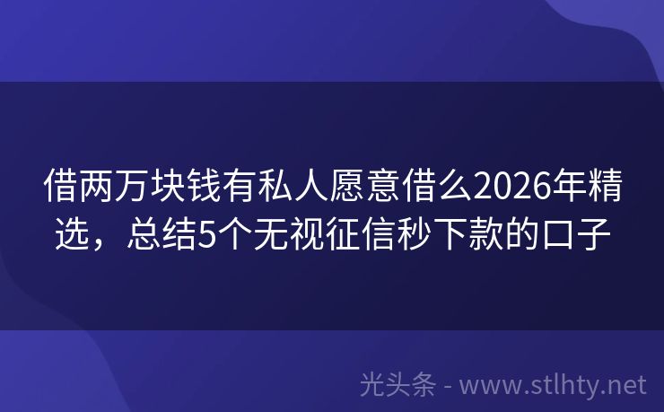 借两万块钱有私人愿意借么2026年精选,总结5个无视征信秒下款的口子