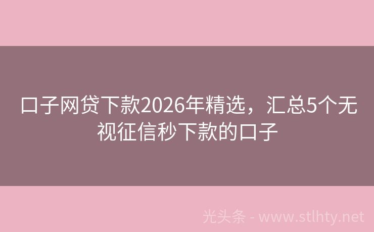 口子网贷下款2026年精选,汇总5个无视征信秒下款的口子
