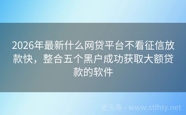 2026年最新什么网贷平台不看征信放款快,整合五个黑户成功获取大额贷款的软件