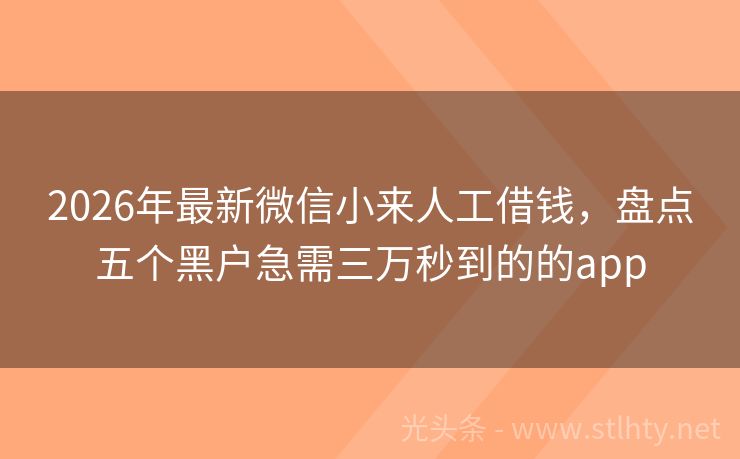 2026年最新微信小来人工借钱,盘点五个黑户急需三万秒到的的app