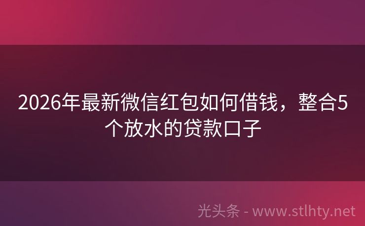 2026年最新微信红包如何借钱,整合5个放水的贷款口子