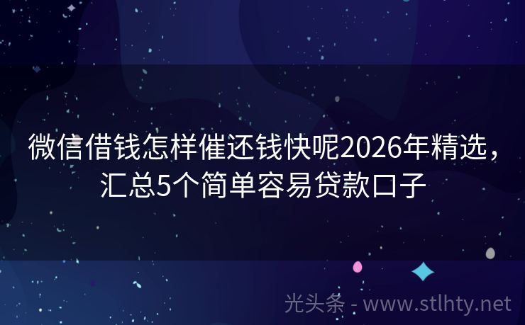 微信借钱怎样催还钱快呢2026年精选,汇总5个简单容易贷款口子
