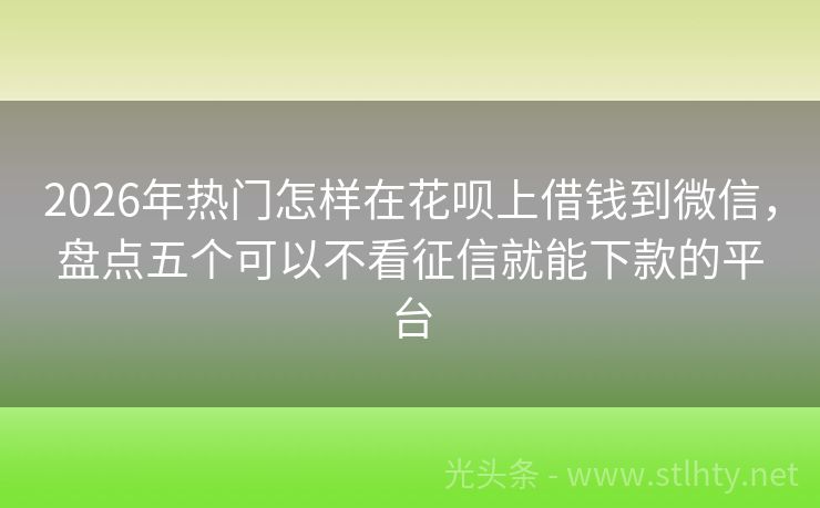 2026年热门怎样在花呗上借钱到微信,盘点五个可以不看征信就能下款的平台