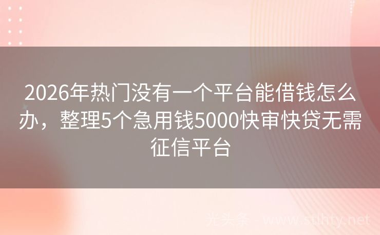 2026年热门没有一个平台能借钱怎么办,整理5个急用钱5000快审快贷无需征信平台