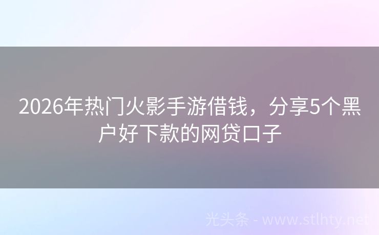 2026年热门火影手游借钱,分享5个黑户好下款的网贷口子