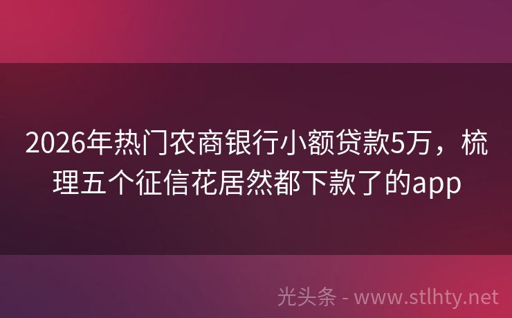 2026年热门农商银行小额贷款5万,梳理五个征信花居然都下款了的app