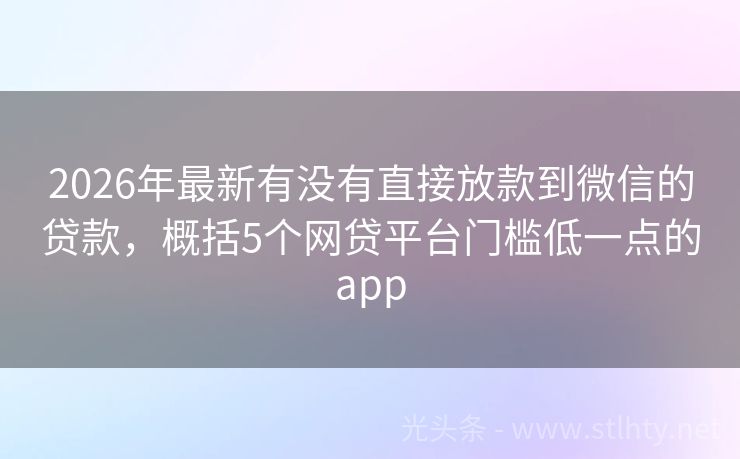 2026年最新有没有直接放款到微信的贷款,概括5个网贷平台门槛低一点的app