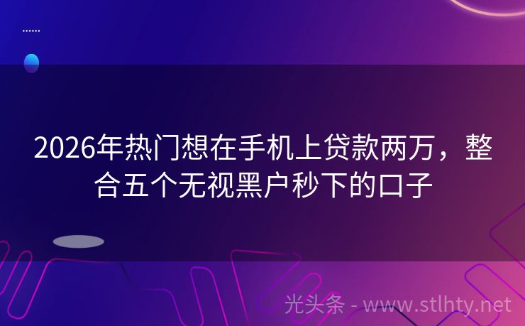 2026年热门想在手机上贷款两万,整合五个无视黑户秒下的口子