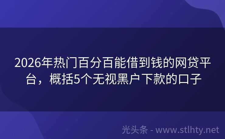2026年热门百分百能借到钱的网贷平台,概括5个无视黑户下款的口子