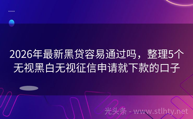 2026年最新黑贷容易通过吗,整理5个无视黑白无视征信申请就下款的口子