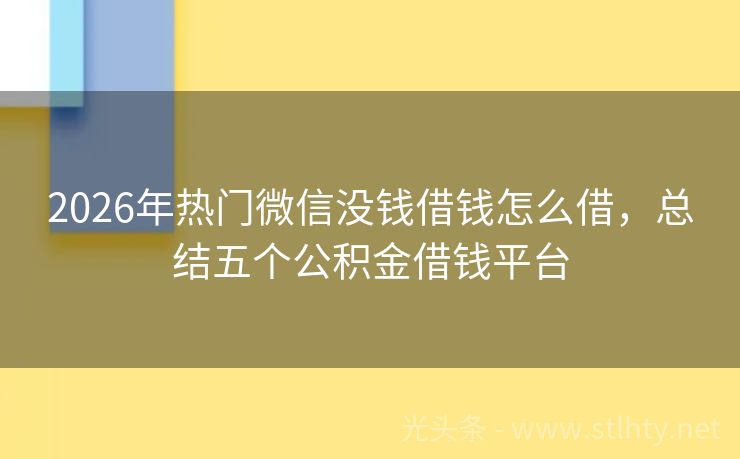 2026年热门微信没钱借钱怎么借,总结五个公积金借钱平台