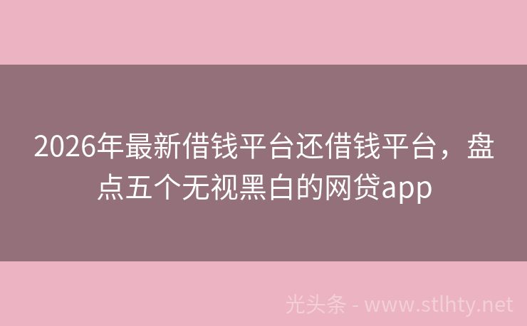 2026年最新借钱平台还借钱平台,盘点五个无视黑白的网贷app