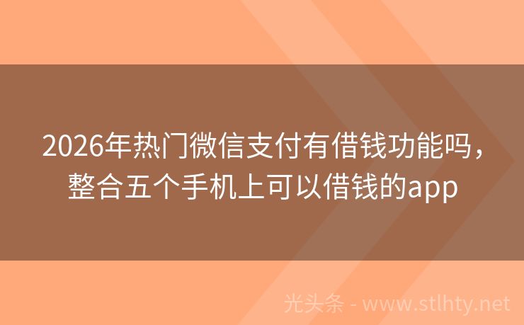 2026年热门微信支付有借钱功能吗,整合五个手机上可以借钱的app