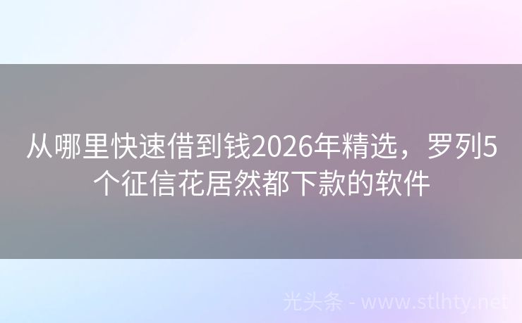 从哪里快速借到钱2026年精选,罗列5个征信花居然都下款的软件