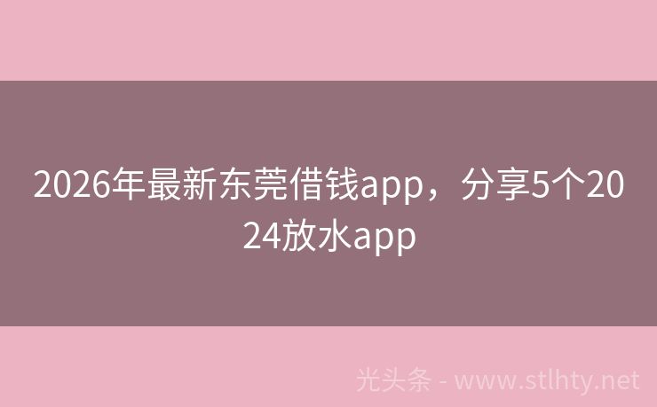 2026年最新东莞借钱app,分享5个2024放水app