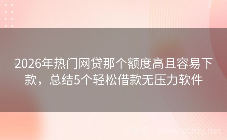 2026年热门网贷那个额度高且容易下款,总结5个轻松借款无压力软件