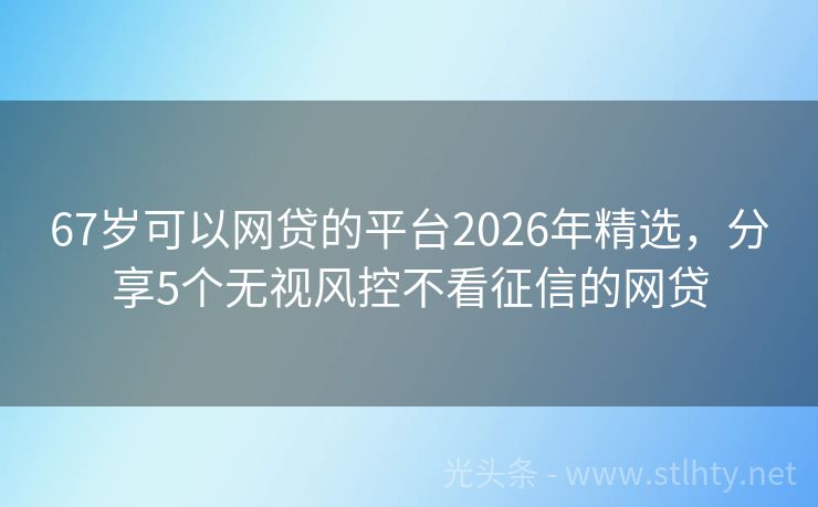 67岁可以网贷的平台2026年精选,分享5个无视风控不看征信的网贷