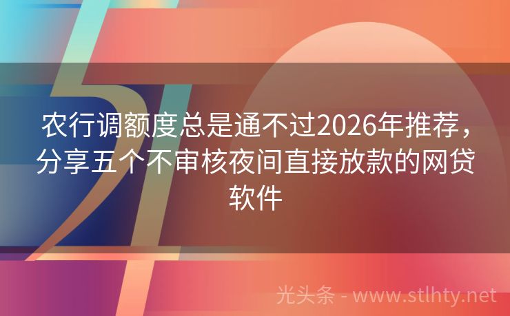 农行调额度总是通不过2026年推荐,分享五个不审核夜间直接放款的网贷软件