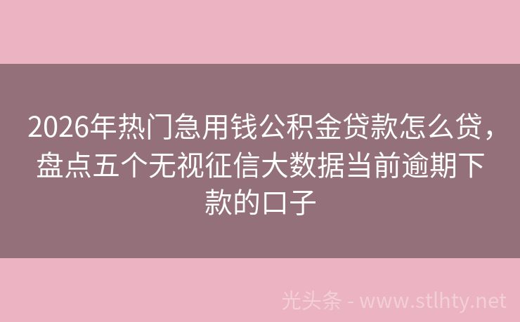2026年热门急用钱公积金贷款怎么贷,盘点五个无视征信大数据当前逾期下款的口子