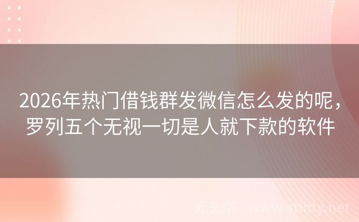 2026年热门借钱群发微信怎么发的呢,罗列五个无视一切是人就下款的软件