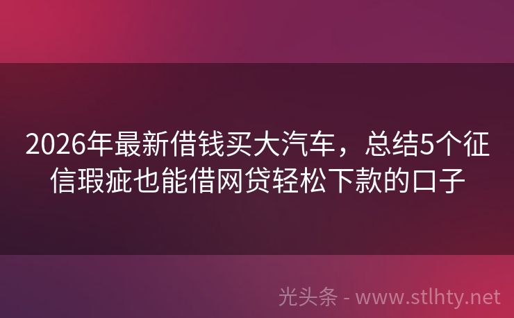 2026年最新借钱买大汽车,总结5个征信瑕疵也能借网贷轻松下款的口子