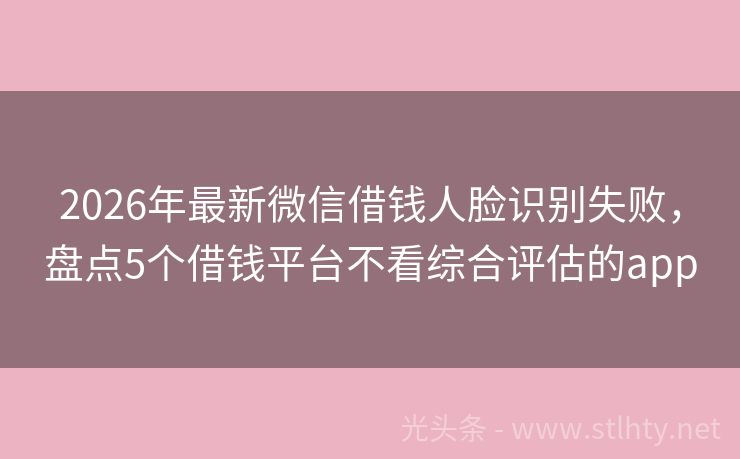 2026年最新微信借钱人脸识别失败,盘点5个借钱平台不看综合评估的app