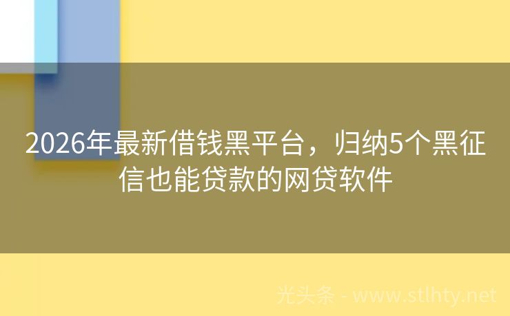 2026年最新借钱黑平台,归纳5个黑征信也能贷款的网贷软件