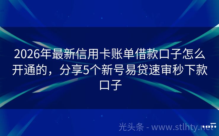2026年最新信用卡账单借款口子怎么开通的,分享5个新号易贷速审秒下款口子