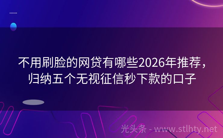 不用刷脸的网贷有哪些2026年推荐,归纳五个无视征信秒下款的口子