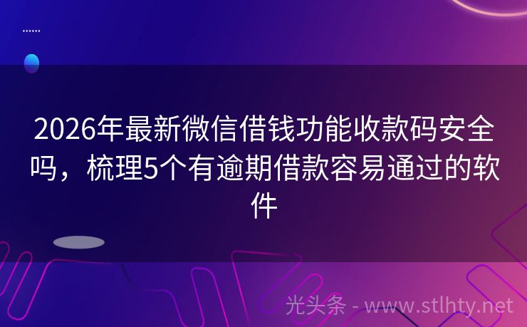 2026年最新微信借钱功能收款码安全吗,梳理5个有逾期借款容易通过的软件