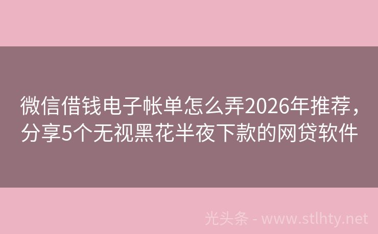 微信借钱电子帐单怎么弄2026年推荐,分享5个无视黑花半夜下款的网贷软件