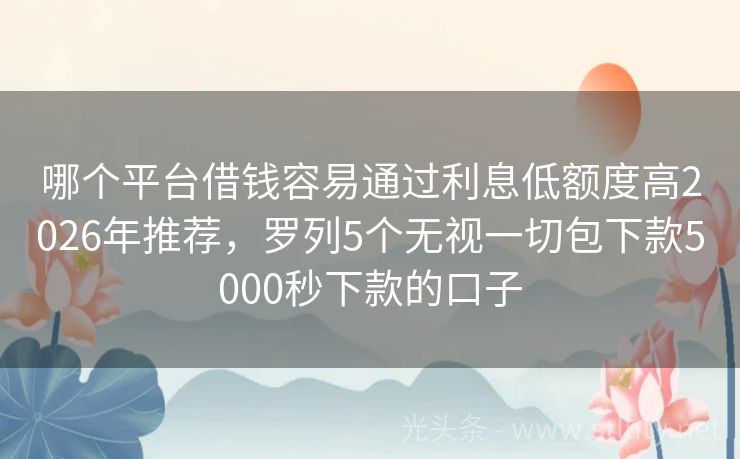 哪个平台借钱容易通过利息低额度高2026年推荐,罗列5个无视一切包下款5000秒下款的口子