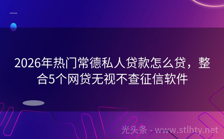 2026年热门常德私人贷款怎么贷,整合5个网贷无视不查征信软件