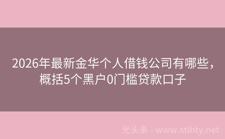2026年最新金华个人借钱公司有哪些,概括5个黑户0门槛贷款口子