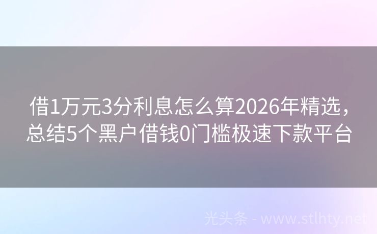 借1万元3分利息怎么算2026年精选,总结5个黑户借钱0门槛极速下款平台